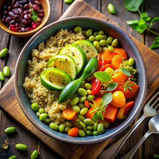 ताज़ी भुनी हुई मौसमी सब्जियाँ और पूरे अनाज का सामंजस्यपूर्ण मेल इसे हरा-भरा स्वाद और बनावट प्रदान करता है।
